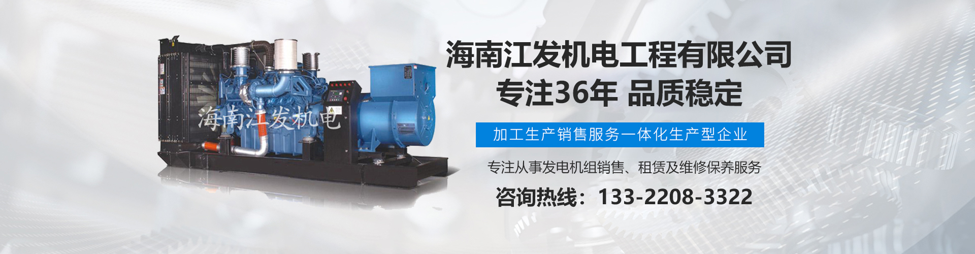 海南江發(fā)機電工程有限公司是海南經(jīng)營進口、國產(chǎn)柴油發(fā)電機組、是海南較早、較大的銷售、租賃服務(wù)及維修保養(yǎng)專業(yè)機電公司。從1985年開始,公司勵精圖治、銳意進取、不斷創(chuàng)新,不僅在海南機電行業(yè)領(lǐng)域中具有先進技術(shù)、完美管理、誠信服務(wù),高超的產(chǎn)品質(zhì)量和性能,而且還有合理的產(chǎn)品性能價格比,令客戶滿意以及完善的支持保障。 在客戶心目中,江發(fā)公司不僅具有最好的企業(yè)信譽,還是客戶最信賴的誠信單位,而且會帶給客戶永遠的光明和豐厚回報。